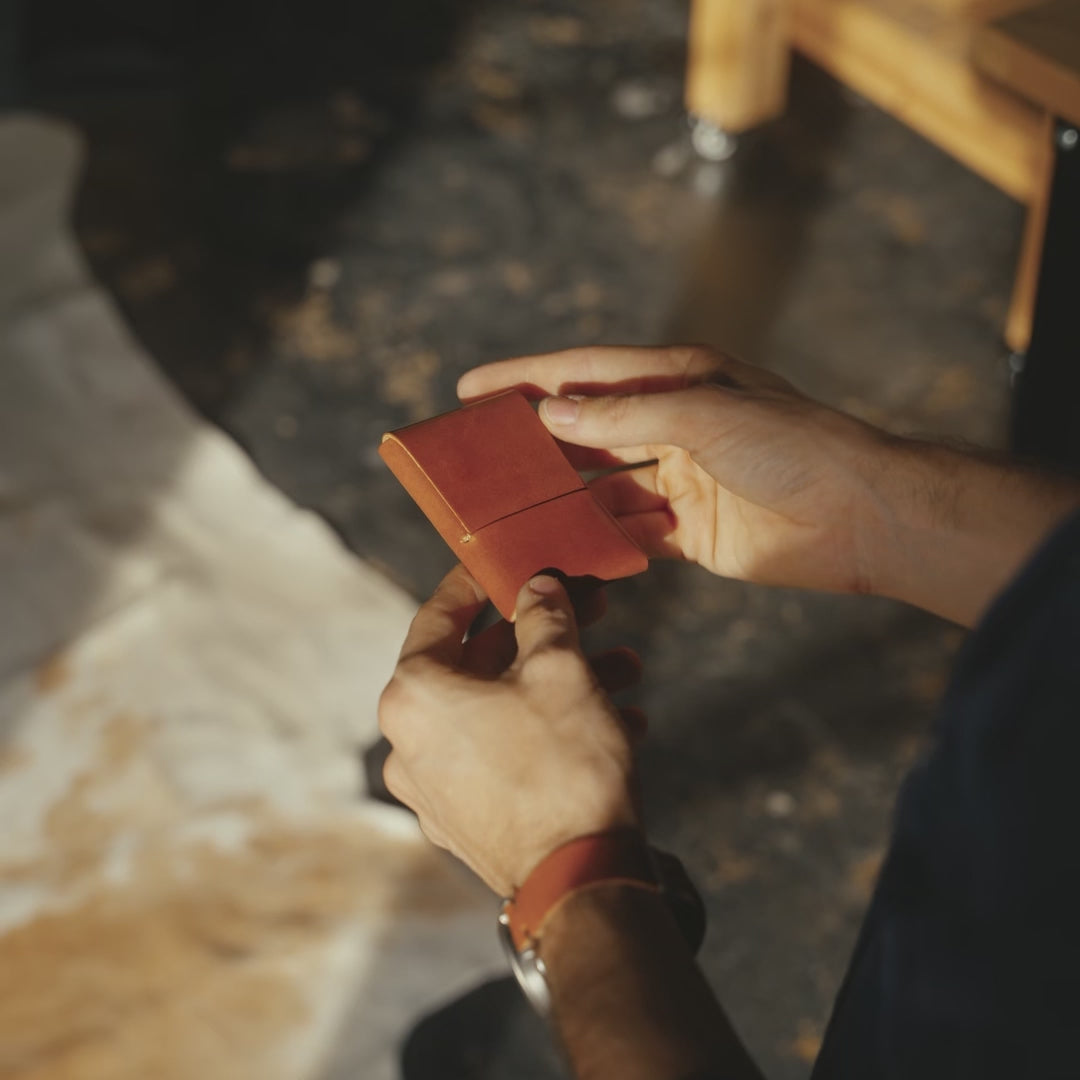 An even smaller version of the Franklin. The Mini Franklin is the ultimate minimalist wallet, designed to carry just the essentials. Crafted from a single piece of high quality full-grain leather, the Mini Franklin will develop a unique patina over time, adding character with each use. With no stitching, there are no weaknesses to this wallet, meaning it will remain functional for decades.
