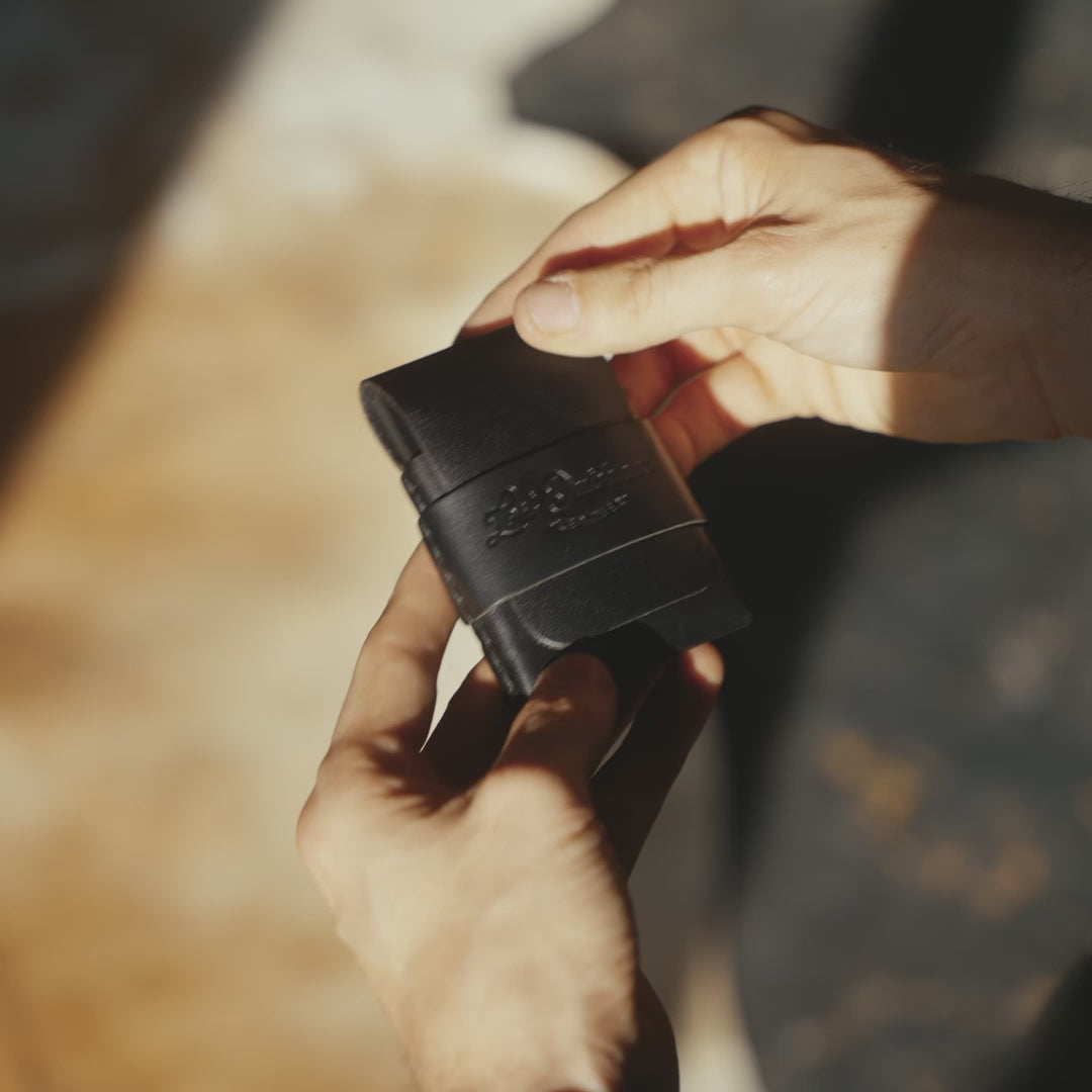 The Finnigan – the minimal card holder built to last a lifetime. Made 100% in the USA, this leather card wallet easily fits 8+ cards and folded cash, with a flap that keeps contents secure. All while remaining barely bigger than a credit card. With full-grain leather, a lifetime stitching guarantee, and endless customization, it's just wrong to settle for less. This is what true minimalism looks like.